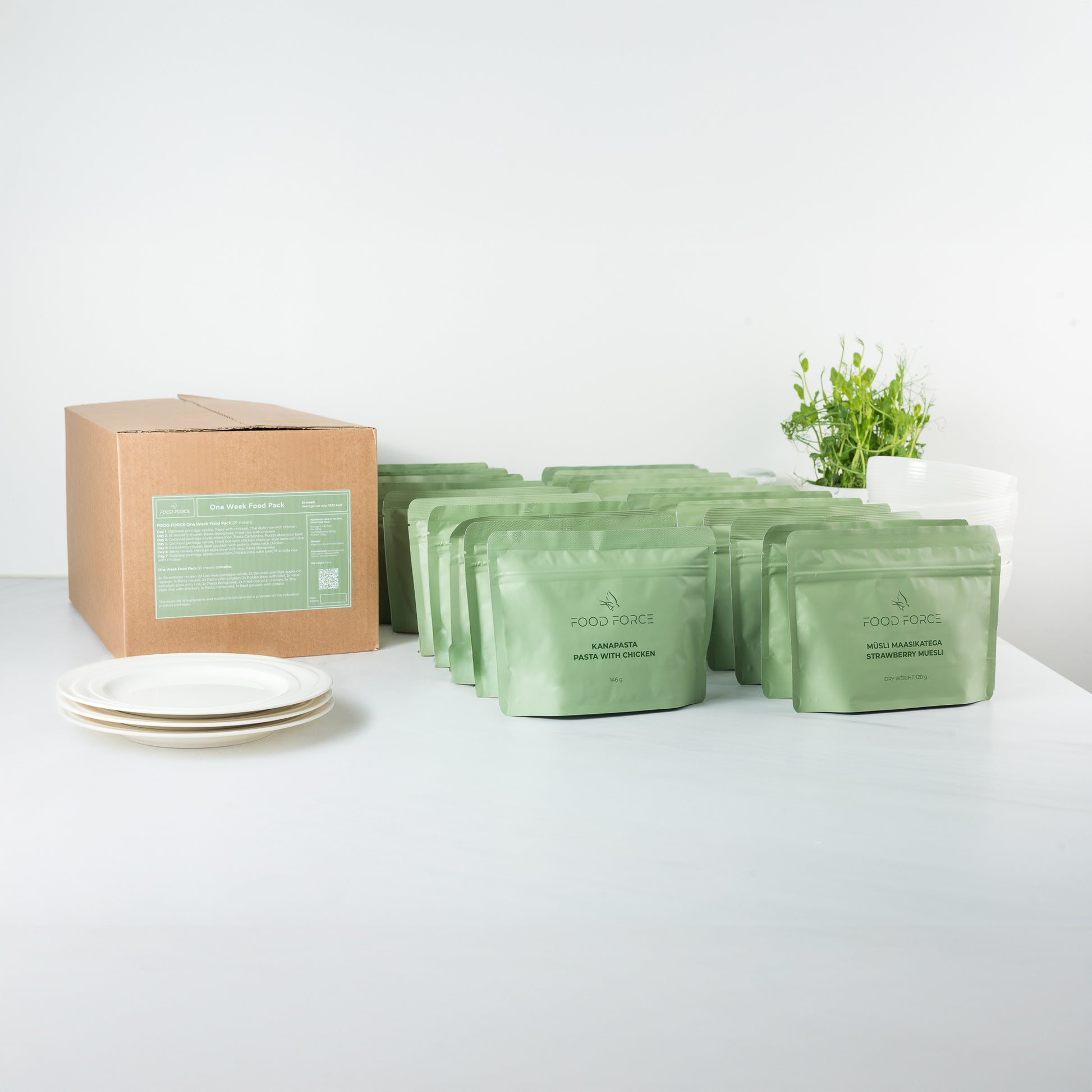 Ühe nädala toidupakk (21 rooga) sisaldab: 2x müsli maasikatega, 2x puder vanilje, 2x puder õuna-kaneeli, 1x müsli marjadega, 2x kanapasta, 2x kartulihautis veiselihaga, 2x mehhikopärane hautis riisiga, 2x pasta bolognese, 2x praetud riis kanaga, 2x taipärane riis kanaga, 1x pasta carbonara, 1x veiseliha guljašš kartuliga.